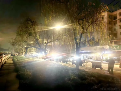 小跑几步,龙王阁路口至闸桥段,数辆小平板车早已经排成一溜,贩卖着凯城人间烟火色:一盏或明或暗的小灯,摇摇晃晃地打碎夜的黢黑;一碗小粥、一块煎饼,腾腾的温暖让浓烈的寒气无处安身;一口小小的平底锅,三五个小饼,绕着小铲上下翻飞,细微的油滋声挑逗着等候者的味蕾,他们上下吞咽着喉结,死盯着平底锅,恨不得用手护着快熟的小饼,生怕被后来者居上。一名道路保洁,解开橘色马褂,拄着笤帚,满脸慈祥、满眼慈爱地看着焦急而又不舍的孩子,一旦小饼到手,赶紧咬上一口,然后一手拉着包带,一手紧攥余下的小饼一路飞跑,他知道,这些娃娃不怕饼的滚烫,也不怕冬晨的高冷,而是担心赶不上入校早读,当然,也可能是生怕赶不上校门的闭合。