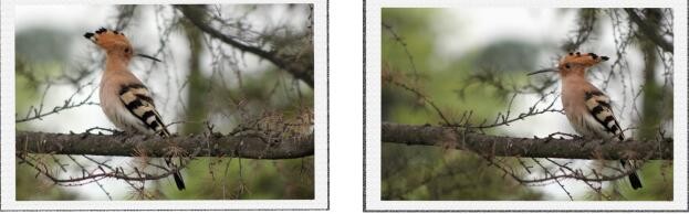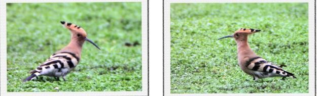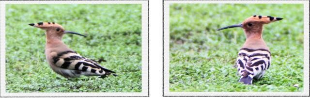 据记载:戴胜鸟又名胡哱哱、花蒲扇、山和尚、鸡冠鸟等,我们川南这些地方喊“阳雀马马”。戴胜鸟头顶有醒目的羽冠,平时褶叠倒伏不显,直竖时像一把打开的折扇,随同鸣叫时起时伏,嘴细长往下弯曲。栖息在开阔的田园、园林、郊野的树干上,怕人不容易接近,要拍摄到它是可遇不可求的事,我还就遇到了。