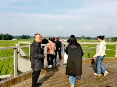 自 2021 年起,彭什川芎现代农业产业园区纳入四川省成德眉资交界同城发展规划,屡获殊荣,先后荣获成德眉资交界地带融合发展首批精品示范点建设一等奖、四川省川芎之乡、成都市乡村振兴一村一品特色农业奖、国家农业部地标性产品认证、申国道地中药材产地认证等,2023年入选全国土特产名录库,2024 年以彭州川芎为主要样品制定的《中医药 - 川芎》国际标准(ISO)正式发布,共计斩获四川省、成都市及国家相关部门颁发的十大奖项或认证。参观完一楼丰富详实的展览后,众人登上二楼、三楼,参观了川芎书屋、川芎知识与业务交流接待设施以及田园风景观景台,尽情领略川芎之乡的美丽乡村风貌,感受乡村振兴的丰硕成果。