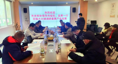 在大兴镇黄荆村4组姜黄标准化种植示范基地,肖瑶伦会长一行听取了大兴镇党委书记周鹏对该镇姜黄基地及全县姜黄生产发展情况和取得的成效介绍,并在姜黄“专家大院”座谈交流。