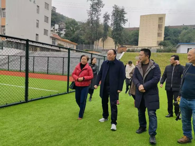 在自贡市外国语学校北校区,调研组一行实地察看了新改建的教学楼、学生宿舍和新建垒球训练场,听取了学校关于北校区的建设、入住、教育教学情况汇报,以及新建垒球训练场场地、配套、设施等情况汇报。