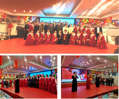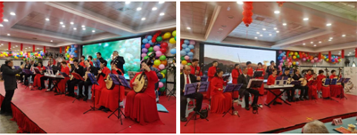 由金雁社区老科协金雁之声艺术团演出的“弹起我心爱的土琵琶”大合唱拉开了年会喜庆的序幕。女声独唱、京歌、京剧、民乐合奏、男声小合唱、舞蹈、男女声二重唱等精彩纷呈的文娱节目演出把年会的喜悦推上了高潮。