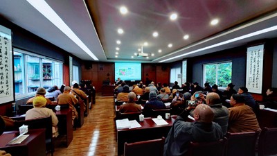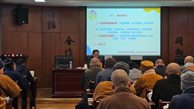 来自龙兴寺、金华寺、三昧水及彭州全市各地的各寺庙宗教寺庙住持、寺庙负责人 100 余人参与了培训活动。