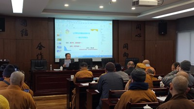 培训过程中,宗教寺庙负责人频频点头,不时提出问题与杨礼通老师进行互动。