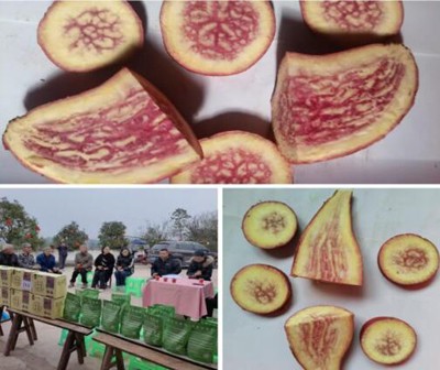 三是县老科协为村民赠送了“彤茈9号”、“D6”彩色良种红薯500多斤。