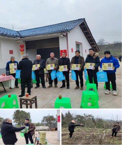 四是为玉牛坡“翠冠梨”种植大户张德勇就梨树春季管理提出了具体措施和办法。将老科协购买的可撒施15亩果园面积的“花果控释肥”——微生物菌剂,送给了宽敞沟村蓬安县玉牛坡种养殖农民专业合作社的“翠冠梨”种植大户张德勇,并到梨园里亲自示范撒施的用法和用量。
