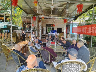 时值仲春,花园村千亩李花竞放,银装素裹的景致令在场人员赞叹不已。在花园村党总支书记杨岑、副书记钟大春的陪同下,敖平镇的老同志们实地走访了花园村王记农家乐、观看了叶莊农家乐外景等旅游节点,详细了解了花园村"春赏花、秋采摘"的产业模式。据介绍,花园村依托4000亩特色果林资源,培育出63家农家乐(含36家大型经营主体)及特色咖啡店等业态,2024年村民人均可支配收入达3.8万元,形成"生态农业+休闲旅游"的可持续发展格局。