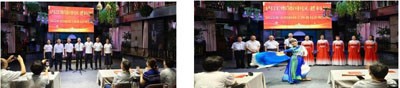 文艺演出以全体合唱《我和我的祖国》掀起首个高潮。诗朗诵《科协之歌》通过铿锵有力的语言,展现了科技工作者之家的温暖与荣光;独舞《探花的蝶》以曼妙舞姿演绎科技探索者破茧成蝶的坚韧历程;抗战题材节目《内江方言·抗战儿歌》表演,带领观众重温了烽火岁月中在中共地下党的领导下,内江科技文化战线通过“内江孩子剧团”表现出高亢的爱国情怀;科普专委原创诗朗诵《祖国颂》以科技视角礼赞山河巨变,城建交通专委的情景合唱《游击队之歌》则以幽默互动点燃全场。