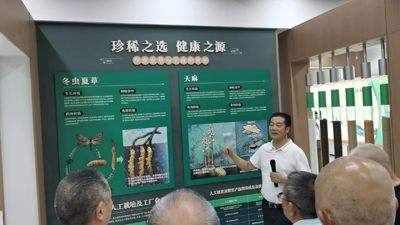在公司食用菌科技展厅“蘑”法空间,与会人员通过图片、实物、视频等,了解了菌类知识和科学利用的发展历程,真正认识食用菌“无叶无芽无果,自身结果。可食可药可补,全身是宝”的食药特有“蘑”力。公司董事长李宗堂先生亲自出面,为参会人员讲解了新近探索虫草仿生栽培和天麻人工种植的技术创新情况。介绍了公司攻克技术璧垒重构优势特色农业产业模型,以食药用菌“方仓式”生产为抓手,创新联农带农新路径的实践情况。