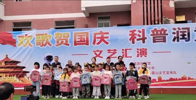 以歌传情,厚植家国情怀。活动在悠扬、清亮的歌舞声中拉开帷幕。老科协夕阳红艺术团、雷山小学和雷山社区文艺宣传队精心编排的舞蹈、合唱等节目轮番上演,用灵动的肢体语言与铿锵的童声,诉说着对祖国的热爱,用歌舞曲艺展现生活的美好和社会的和谐,为同学们上了一堂生动的美育课。学校全体师生,感受到了艺术带来的精彩和精神世界的高远与美好。孩子们眼里闪着光,爱国种子在他们心中生了根。文艺演出不仅活跃了氛围,更以润物无声的方式,将家国情怀深植于青少年心田。