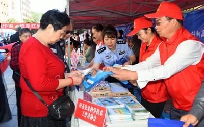 【老科协科普志愿者在首个全国科普日主场活动发放宣传资料】