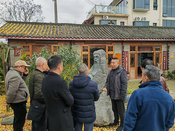 老科协一行第一站到友爱镇“扬雄文化馆”参观调研,郫都区扬雄学会会长于润石先生和郫都区子云学校副校长黄伟详细介绍了扬雄先生的事迹和在中国思想史、哲学史、文学史、教育史、文字学史上的伟大成就。
