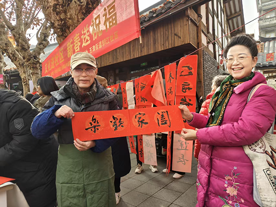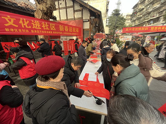 此次义务写春联、送“福”字活动共送出春联和“福”字两百余幅,不仅让社区群众感受到了传统书法艺术的魅力,更以接地气的方式将文化服务送到社区、送到群众手里,既弘扬了中华优秀传统文化,又丰富了社区群众的精神文化生活。文化进社区是区老科协多年来一直坚持开展的系列活动,下一步,区老科协将开展更多接地气、暖民心的文化惠民活动,让传统文化落地生根,为“诗画新津”注入浓郁的文化力量。