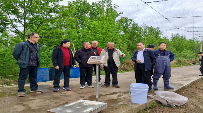 上午10点,在涵水“江口青鳙现代渔业养殖园区”,恰逢园区养殖工作人员正繁忙向养殖区域网箱投放青鳙鱼苗,专家组与园区业主、养殖技术及工作人员交谈,详细了解园区养殖现状、生产运营及发展中遇到的难题。当了解到5х5х4.5㎡网箱1万尾的投放密度时,市老科协水产专家李和平、县老科协水产专家唐绪全深入分析放养密度与短期效益的质效关系,建议开展投放鱼苗密度试验,每一箱投放3000尾、5000尾、8000尾与10000尾不同密度对比试验,进行年度成本效益精准核算,探索兼顾长短效益的养殖密度和养殖模式,加速养殖资金周转,实现降本增效提质增收目的。