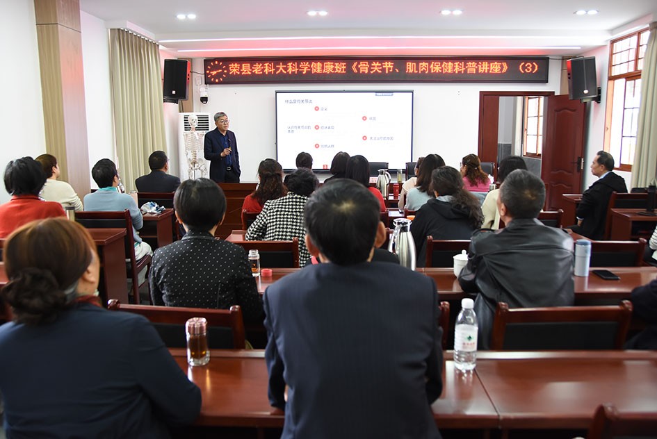 4月2日,荣县老科学技术工作者协会(以下简称“老科协”)特邀县政协副主席、县中医医院原院长、主任医师钟永平,在荣县老年科技大学(以下简称“老科大”)教室,为50余名退休干部、老科技工作者及市民带来《骨关节、肌肉保健》专题科普讲座。这是荣县老科协联合老科大今年推出的第三场“银龄微讲堂”,实用的健康知识精准送到了老龄“大学生”的心坎里。
