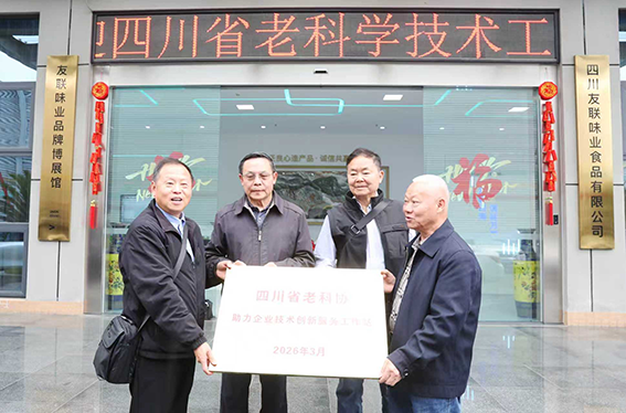2026年,成都市郫都区老科协被四川省老科协批准设立助力企业技术创服务工作站。4月10日上午,在郫都区中国川菜产业城四川友联味业食品有限公司会议大厅举行了工作站授牌仪式。出席授牌仪式的领导有,四川省老科协常务副会长兼秘书长陶智全、副会长兼服务企业工委主任祝明国、副会长况涛、副秘书长陈敏,成都市老科协副会长马良乾、副秘书长李维嘉,郫都区区委组织部副部长陈慧、郫都区科协主席薛峰,郫都区政协原副主席区老协综合党委书记王生琪。郫都区老科协班子全体成员,经科工委、三农工委相关负责人,四川友联味业食品有限公司、成都汇菇源生物科技有限公司、四川省中药饮片有限责任公司等企业代表参加授牌仪式。
