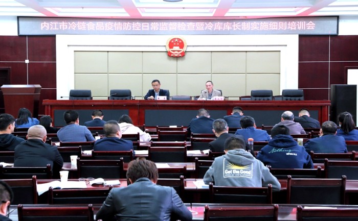 中国食品安全网讯(李宗泽)2021年3月19日,内江市市场监管局召开冷链食品疫情防控日常监督检查暨冷库库长制实施细则培训会。市市场监管局副局长黄青主持会议,各县(市、区)市场监管局分管领导、股室负责人,500—5000平方米冷库属地库长、行业库长、企业库长,餐饮科、食品生产科负责人参加会议。