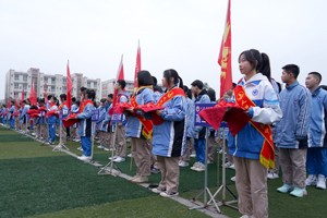全体高初三同学向五星红旗庄严宣誓:我们自信而执着,肩负着父母和师长的重托。今天,在庄严的国旗下,我们以青春的名义宣誓:我们要用智慧培育理想,我们要用勤奋创造奇迹,我们要用实力铸就辉煌;我们将把懒惰、退缩、彷徨从青春的字典中磨灭精光;我们将以沉着的心态,坚定的信念,迎接每一天的挑战;我们将带着从容的微笑去迎接属于我们的荣光!