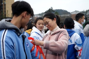 青年不惧未来长,彼方尚有荣光在。高三、初三学子们将迎来人生重要的考试,为了给同学们加油助威,鼓舞士气,初、高三年级教师在党支部书记李华清、校长张家智带领下为高三、初三年级同学们系丝带。飘扬的丝带,寄予了全校师生的祝福和期望,让同学们心潮澎湃,斗志昂扬,纷纷表示,将不负青春,奋勇前行。