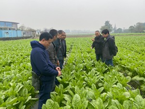 为了用实际行动迎接中国.四川(彭州)第十二界蔬菜博览会开幕,在蔬菜博览会即将开幕前夕,11月20日彭州市老科协携手濛阳街道办事处、彭州市乡村投资集团有限公司、濛阳街道丰碑村“三界镇农民蔬菜产销专业合作社”和启航公司和丰碑村农民蔬菜专业合作社和市老科协老专家(高级农艺师)到濛阳蔬菜田间指导冬季蔬菜霜霉病的防治技术在濛阳研彭州市乡村投资集团有限公司蔬菜科技研学基地蔬菜田边,市老科协老专家邹恒贵、陈光辉对蔬菜进行了田间检查,就当前莴笋霜霉病的防治方法与合作社理事长和公司职工进行了现场指导。接着,老专家们对蔬菜的合理使用追肥、喷施叶面肥、提高蔬菜的产量和产品质量、搞好蔬菜种苗田间管理、培育壮苖等方面提出相关农业技术方案。