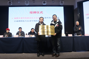 大会上由成都市老科协常务副会长兼秘书长王宗全、老协综合党委书记王生琪为新发展的老科协工作联系点——成都顾连天辰老年病医院授牌。