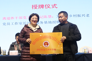由区委组织部副部长、老龄委副主任、老干局局长陈慧为新发展的老科协助推乡村振兴老党员工作室长河村服务基地授牌。