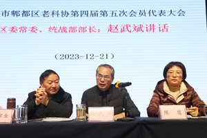 区委常委、统战部部长赵武斌在热情洋溢的讲话中,充分肯定了老科协一年来的努力。他说:今天我们在这里隆重集会,召开郸都区老科协第四届第五次会员代表大会,我谨代表区委向大会的圆满召开和大会表扬的先进集体、优秀会员表示热烈祝贺,向关心支持郸都区老科协工作的各位领导、代表、社会各界人士表示衷心的感谢!