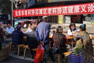在沿滩区永安镇场镇上,市老科协组织医疗卫生专家开展义诊服务,进行常见病防治宣传、健康诊疗咨询等,吸引了许多群众前来问诊。老专家们发挥专业特长,耐心接待每一位群众,详细询问病情,解答咨询提问,提出诊治建议,把优质医疗服务送到农村群众身边。