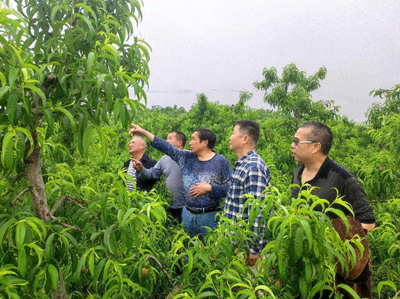 走出柑橘基地,专家组一行又马不停蹄来到仙市镇八斗村,在自贡诚德果业有限公司直立分层型高密度种植的加州脆桃生产园,向公司法人兼技术总负责人代彬现场传授了春季管理中需要高度重视的技术管理事项。代彬在向专家一行冒雨及时到现场指导表达感谢后,表示立即将专家传授的蔬果、壮果等技术措施落实到位,在目前植株长势良好、结果情况理想的基础上,确保产量品质再上新台阶。