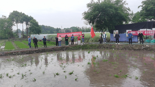 参训人员到现场,进行抛秧技术实操演示。这场生动的培训会和现场抛秧示范,深受广大种植户代表和社区干部的好评。(彭州市老科协)