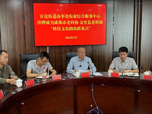 “翻耕播种,双抢农时”的耕耘之际,5月10日上午,成都市老科协和金堂县老科协在金堂县官仓街道办为农业综合服务中心授牌——共建“科技支农、助农”服务联系点。