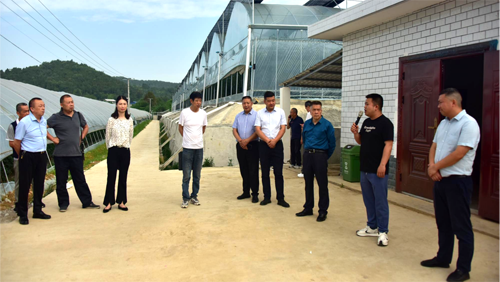 在圣寿村现代蔬菜产业园,调研组一边仔细查看蔬菜的种植情况,一边听取县蔬菜协会会长唐伟的情况介绍。调研组一行与园区工作人员还深入交流种植技术、市场前景等方面的问题。