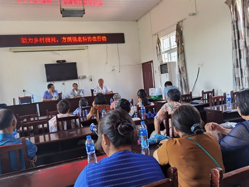 培训会邀请了泸县农业农村局退休中级农业师曾维汉作专题讲座。农业师用通俗易懂的语言,对当前水稻、旱作物(高粱、大豆等)田间管理作了非常详细的讲解。