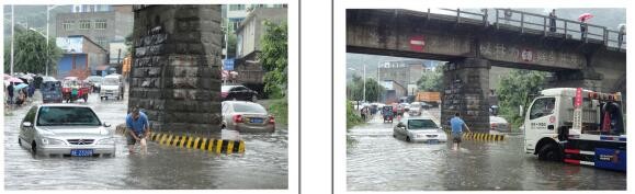 2012年7月22日,巡场镇中心路与珙县米市街小学之间的铁路桥下被水淹的场面。
