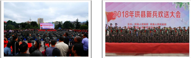 珙县有拥军优属的光荣传统,全面落实各项优抚政策,用心用情为军属排忧解难。其中,每年欢送新兵大会都在僰文化广场举行,营造“一人参军,全家光荣”的社会风尚,2019年起,珙县已连续六年被表彰为四川省双拥模范县。