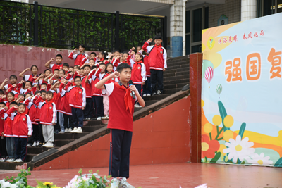 随着鲜红的五星红旗冉冉升起,本次活动拉开了帷幕。5.3中队的队员迈着坚定的步伐出旗,全校师生高唱《中国少年先锋队队歌》。