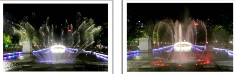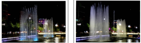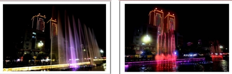 一根根彩色水柱伴随着优美的音乐和变化的灯光直冲云霄(底部构图有区别)