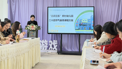 培训伊始,五星幼儿袁霖凌老师以《“三识三乐”农村幼儿园二十四节气食育课程方案》为核心,从课程设计底层逻辑出发,为全体教师系统讲解课程构建框架。同时,袁老师明确了食育课程的“三维目标”:一是引导幼儿感知节气与饮食的关联,养成健康饮食习惯;二是渗透农耕文化与传统习俗,厚植文化认同;三是通过动手操作提升幼儿生活实践能力。此方案的学习为教师们后续食育课程实施提供清晰路径。