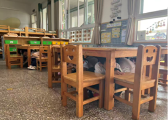 演练开始信号发出后,各班教师迅速组织幼儿采取正确的避险姿势,双手抱头,躲在课桌、墙角等安全位置。待 “地震” 稍缓,教师立即带领幼儿按照预定疏散路线,弯腰、护头,快速、有序地向操场、后山等安全区域撤离。在撤离过程中,教职工分工明确,密切配合,引导幼儿不推挤、不慌张,确保每一名幼儿都能安全撤离。