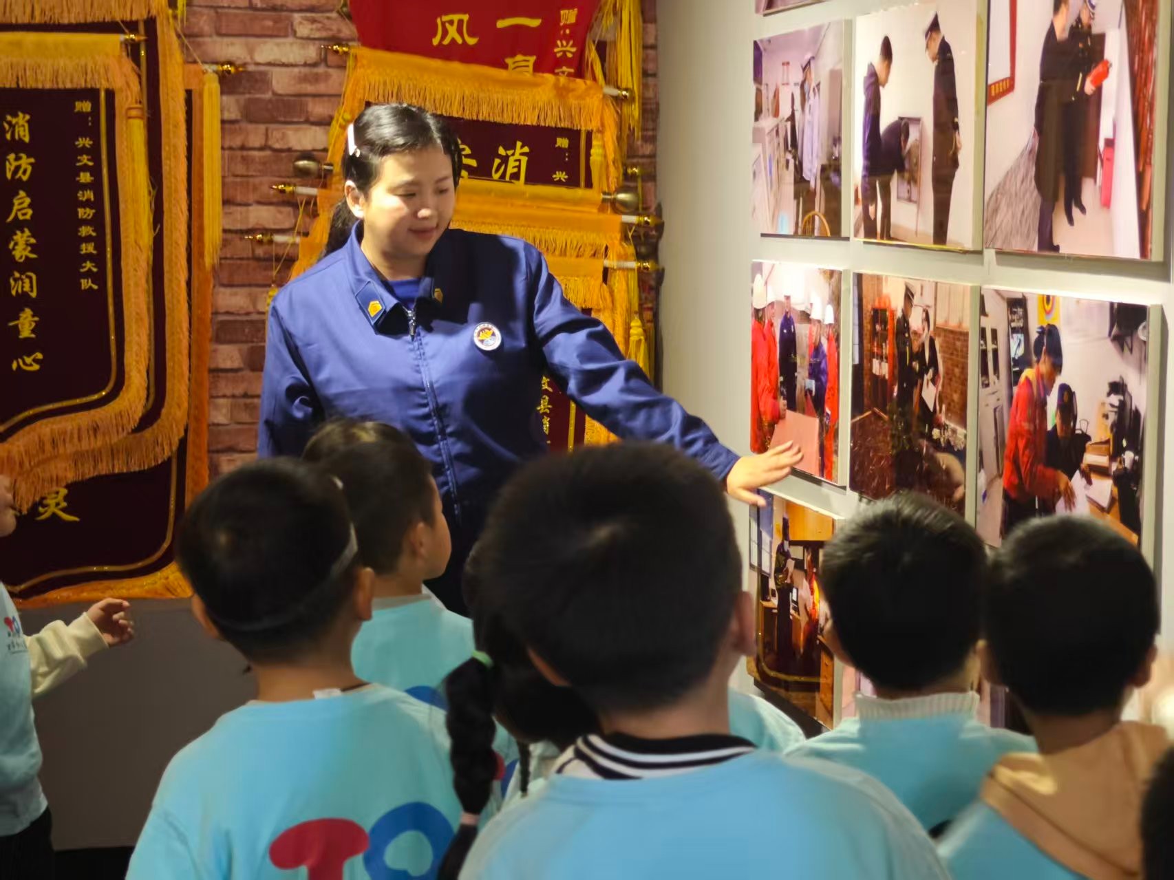 其五,组织大班部分幼儿参观消防大队实践活动。幼儿们走进消防大队,近距离参观消防车辆、灭火装备,聆听消防员讲解装备用途与操作方法,亲身感受消防员的工作日常,不仅拓宽了视野,更增强了对消防员职业的敬畏之心,进一步强化了消防安全意识。
