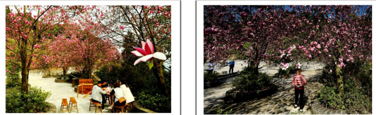——“满山茶花似彩霞,春夏秋冬任你画。比邻文人侃不尽,远洋游客也来夸。”
