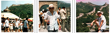 图(1):我站在天安门层楼前留影;图(2):我和儿子在1949年10月1日,毛泽东站过的位置留了一张影;图(3):我坐在天安门层楼前、儿子在后面留影。