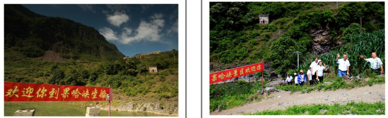 “欢迎你到果哈峡坐船”标志 “果哈峡景区欢迎你”标志