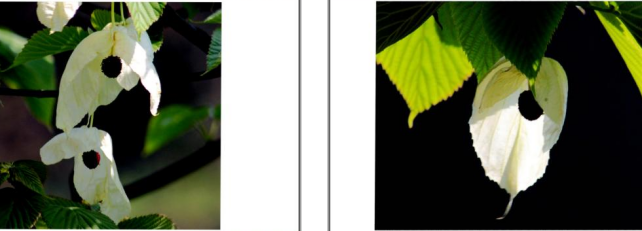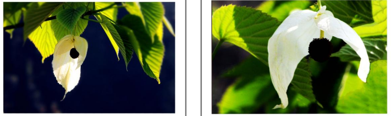 珙桐树盛开繁花,它的头状花序下有两枚大小不等的白色苞片,呈长圆形或卵圆形,长6~15厘米,宽3-8厘米,如白绫裁成,美丽奇特,好像白鸽舒展双翅;而它的头状花序像白鸽的头,珙桐有“中国鸽子树”的美称。