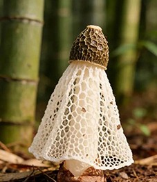 一念竹荪,生于幽谷,长于竹下。伞骨轻开,如纱似雾,不染尘嚣;素影亭亭,若仙子临波,自守清欢。不争春色,却得山林之灵;不羡繁华,独蕴清芬之味。其形,洁白如玉,裙裾微曳,似月华凝就;其质也,脆嫩如雪,香气暗浮,若晨露酿成。避世于腐叶之间,不以无人而不芳;托身于湿土之隅,不以寂静而改节。一念聆听,心自澄明。听风过竹林,簌簌如语;听雨落山岗,涓涓如诉。菌丝潜生,如念绵绵;破土而出,似悟生生。静观其变,顿觉浮生若梦;细嗅其香,忽知大道至简。或曰:一物微渺,何足挂怀?然则天地有情,草木知意。竹荪虽小,可涤俗念;清汤一盏,能洗尘心。念之所及,万象皆空,唯此一菌,伴我幽境。世间纷扰,多为名利奔忙;心中净土,几被喧嚣掩藏。幸有竹荪,以静制动,以简驭繁。一念起时,万虑皆净;一菌入心,天地皆春。或曰:竹下生清梦,风前荡俗尘。不须寻大道,菌语即天真。