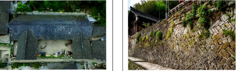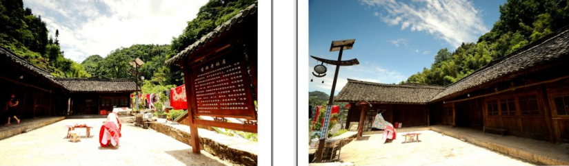 在“紫微山庄”左侧那座苗族老祖屋,是典型的川南民居木结构建筑,现存两组建筑,分别由正房和两间厢房组成三合院落。就是坐落在“人字”石墙之上,墙体东西两边和两院间制石门相通,石门内侧安装有石枢、石门、石栓。