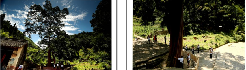 据介绍:古老而神秘的“紫薇古树”树龄为1000余年,树高43米,胸径1.63米。紫薇树每年6月。脱皮一次,树皮对皮肤病有一定的疗效。树底有一个小洞,洞内有水,并且常年不干涸,也不会外溢。该水经有关专家鉴定可以饮用,有益人体健康。