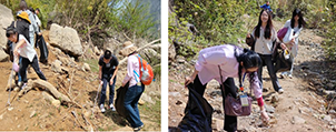 活动伊始,志愿者与孩子们围成一圈,以“桃花朵朵开”的破冰游戏拉开序幕。欢声笑语间,原本陌生的彼此迅速拉近距离。随后,大家戴上手套、拿起垃圾夹和垃圾袋,有序走向涪江六峡河岸。志愿者们带领孩子们排成一列,自下而上向岸坡推进,仔细捡拾散落的垃圾,统一收集。十几袋垃圾被清理干净,江岸恢复了应有的洁净。青山绿水间,孩子们小小的身影写满执着,志愿者们忙碌的脚步坚定有力。