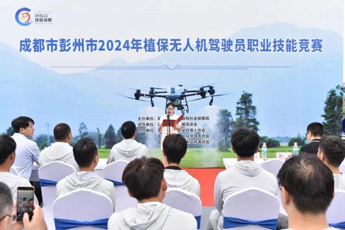 彭州市2024年植保无人机驾驶员职业技能竞赛圆满举办为实施人才强市战略,通过“低空经济+现代农业”的深度融合,推广现代化农业种植技术,进一步提升我市农业种植效率,打造一支现代化的高素质植保无人机飞手队伍,为精准农业和智慧农业的战略发展提供有力支持,助力我市低空经济“展翅高飞”,6月26日,由彭州市人社局主办、彭州市人才发展促进会承办、彭州市老科学技术工作者协会、彭州市农业职业经理人协会等单位协办的彭州市2024年植保无人机驾驶员职业技能竞赛在天彭街道白庙村圆满举办。