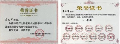 她深耕英语,持续精进,不断学习深造,努力提升自己的专业素养。积极参与课题研究,其撰写的多篇论文在成都市荣获一等奖。